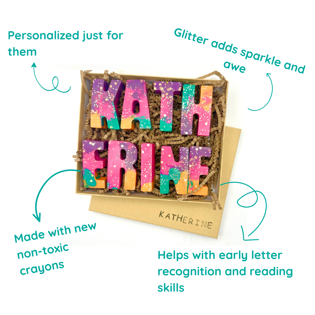 Looking for non-glitter name crayons? No problem—they’re available in their own separate listing!